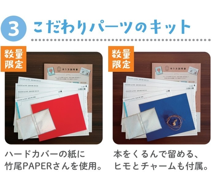 なお限定キットについては、紙の素材感をいかすため、透明フィルムは使わない仕様となっております。キット内容に含みません。説明書の「透明フィルムを貼る作業(ステップ1・ハードカバーをコーティング)」は省略してください。